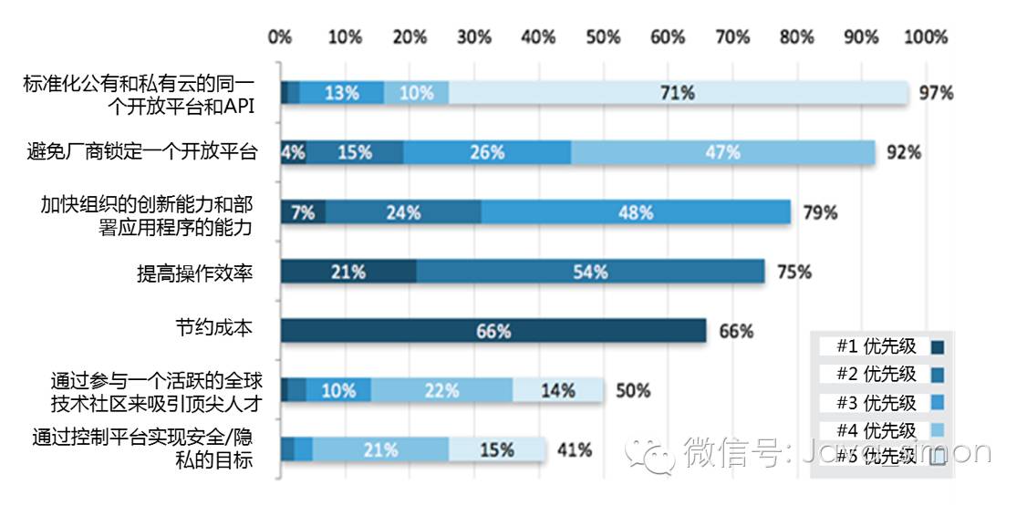 运营效率、加速组织的创新能力和更快的开发应用程序是次之的关键因素。