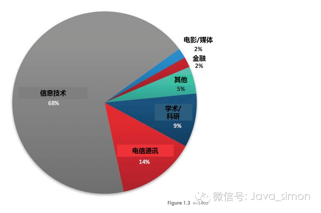 在本次用户调查中最主要的类别是仍是信息技术。相比上个周期的 64% 和去年同期的 54%,IT 业今年占据了一个更大的比例(68%)。