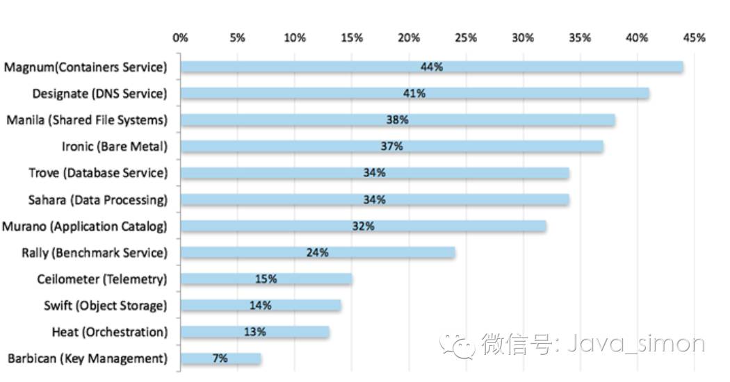 所以,OpenStack 的未来是什么样子的? 由于调查设计的变化, 许多更多的用户对新兴 OpenStack 项目更感兴趣, 特别是在容器服务上:Magnum、DNS 和 Manila 共享文件系统。