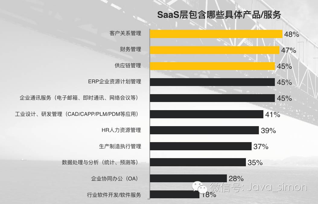 其中客户关系管理占比 48%,财务管理占比 47%,供应链管理占比 45%。
