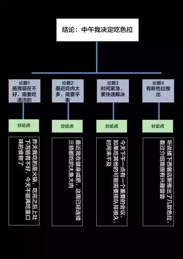 无论是谁,都会喜欢这样的陈述方法。这也是为什么,当你给领导汇报工作的时候,他们绝不可能听你长篇累牍的解释分析,他们只会听你的结论,或者解决方法。当他们有兴趣的时候,会追问细节,当他们很忙的时候,他们只需要听到最重要的东西。