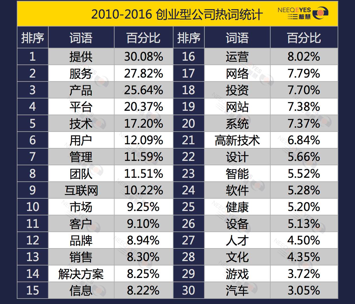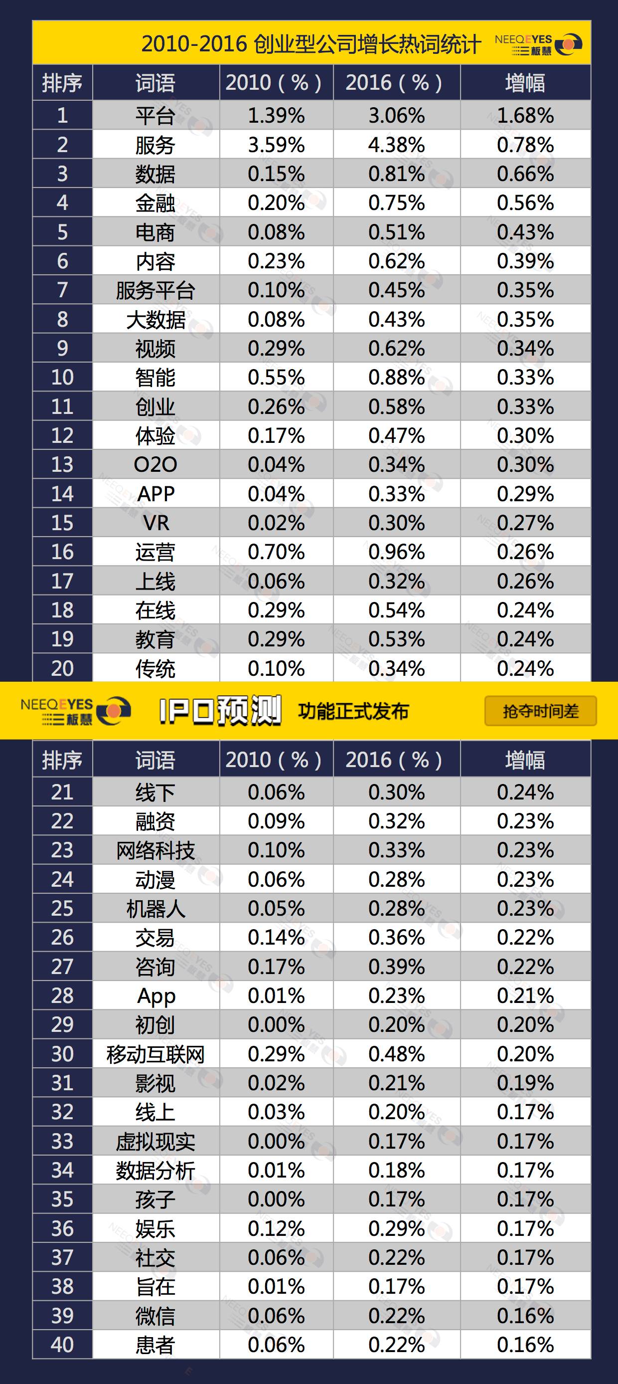 2016年,两个词又达到了新高,分别占初创企业的1.04%、0.37%,较上年占比增长了194.07%和188.19%。