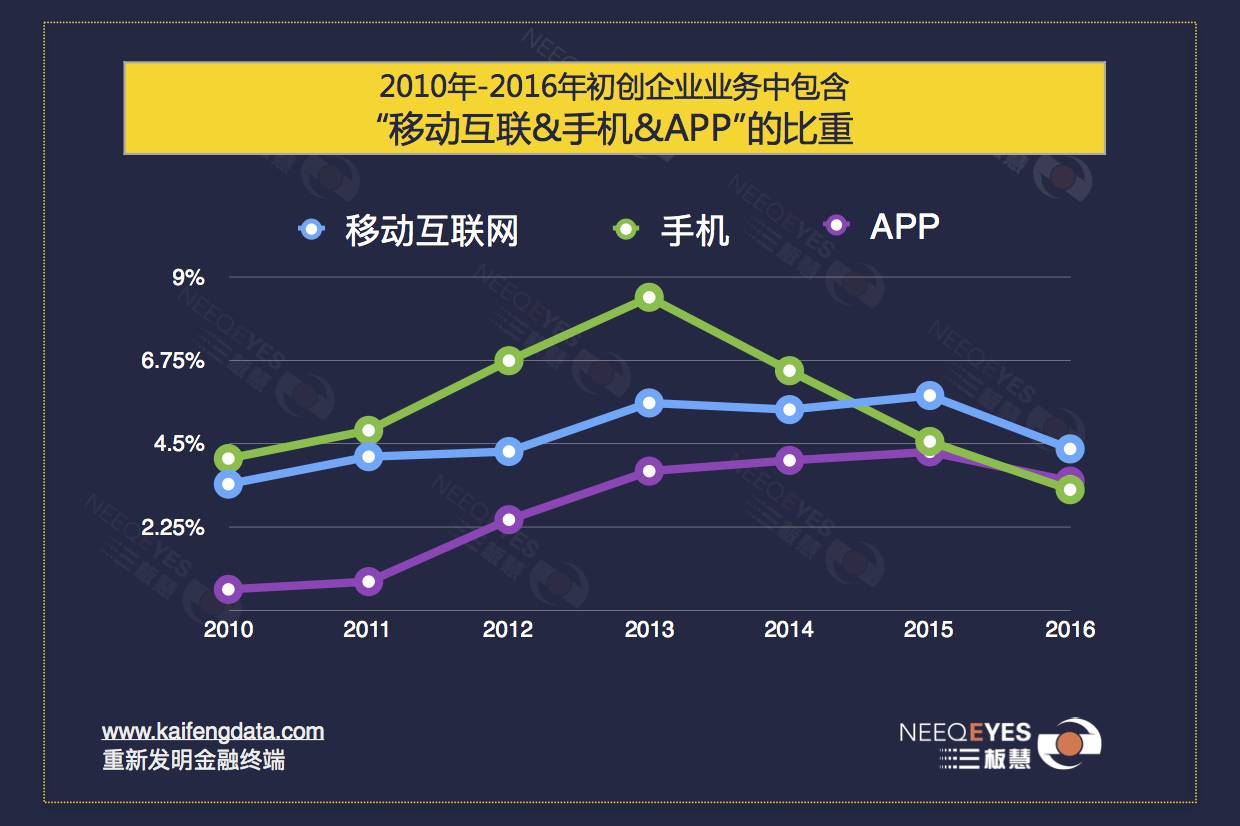 有4.28%的初创企业在过去6年的时间里使用了“移动互联网”一词,与之相关的是“手机”和“APP”。