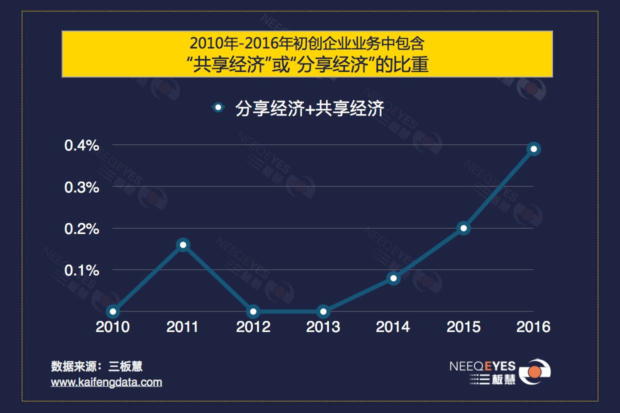 “共享经济/分享经济”在近两年获得较大发展,投资热度正在不断升温中。2016年,描述自己是“共享经济”或“分享经济”的初创企业占比为0.39%,较上年占比增长了95.05%。
