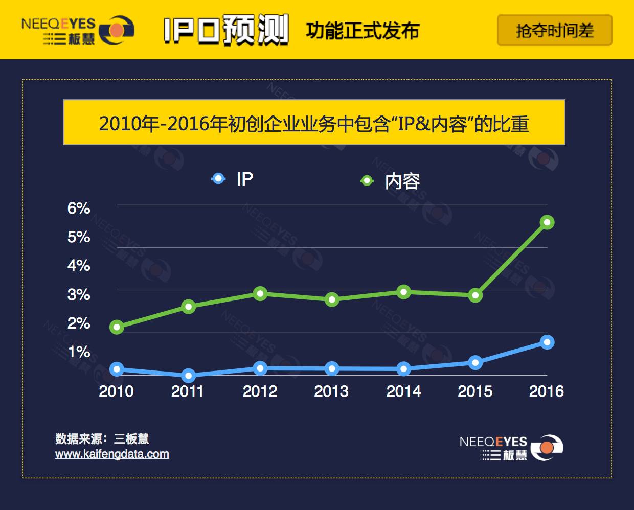 文创领域,“内容”或“IP”于2015年后开始获得风投较大的青睐。在2016年,两者占初创企业的5.40%和1.18%,占比增长率分别为90.58%和159.56%。
