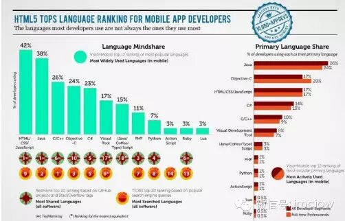 调查显示,越来越多的开发者正在使用除平台主要语言之外的编程语言来开发相关应用,比如,在iOS上,除了ob