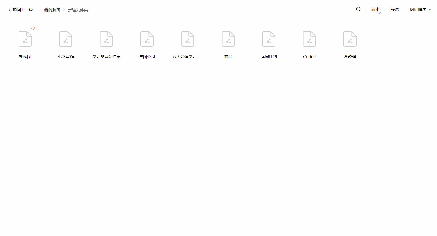 点击【多选】按钮,可批量管理多个思维导图,批量重命名、移动、复制、删除多个思维导图文件。