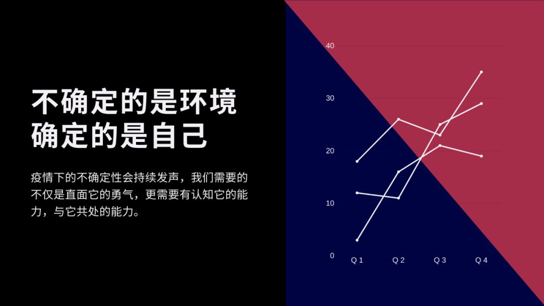 在一个持续变化的环境里,没有人能够预测并籍由预测作出判断和选择。疫情下的不确定性会持续发声,我们需要的不仅是直面它的勇气,更需要有认知它的能力,与它共处的能力。不确定的是环境,确定的是自己。