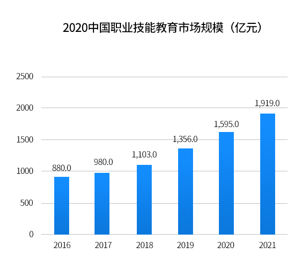 1、艾媒咨询数据显示,2018年中国职业技能教育市场规模达1103.0亿元,预计持续保持增长,到2021年,将达到1919亿元。