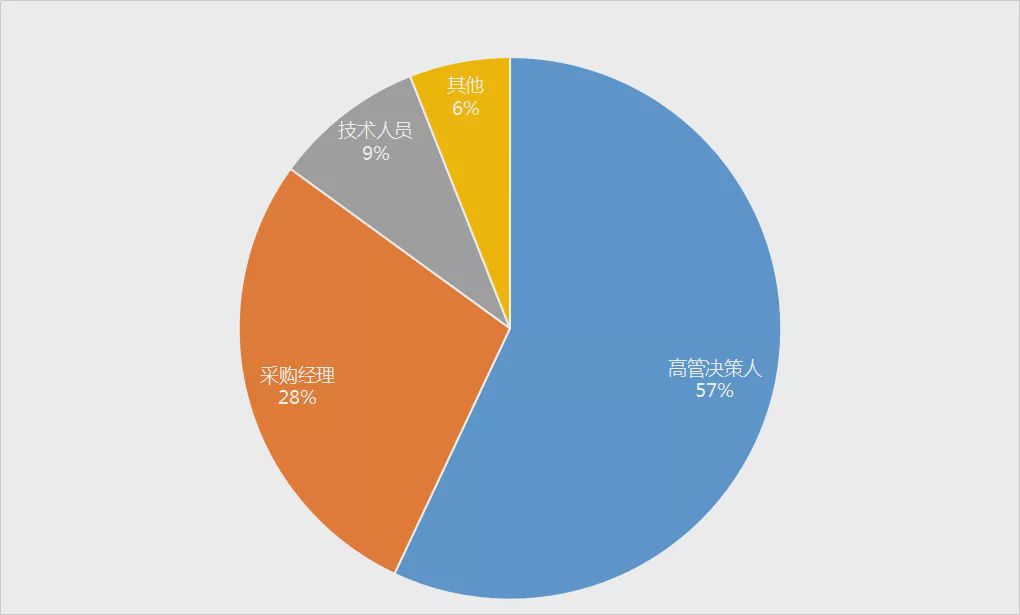 在本届具有商业价值的专业观众共计49012人次,其中占比较多的高管决策人,达到57%;其次,采购经理占比28%、技术人员占比9%,其它占比6%。