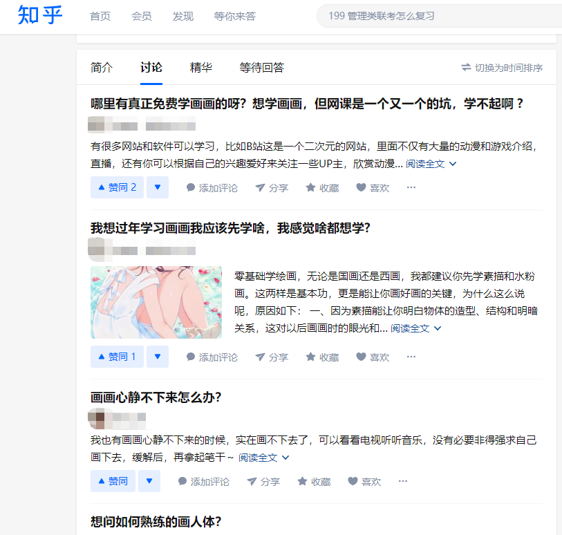 例如一家艺术培训机构,可以通过搜索关键词“艺术培训”“美术培训”“零基础学画画”等,然后点击话题,里面有许多受关注的提问和讨论,老师可以选择回答相关问题来曝光内容,用自己的经验学识帮助画画兴趣爱好者解决初步困惑,这就是精准度比较高的“流量宝地”。