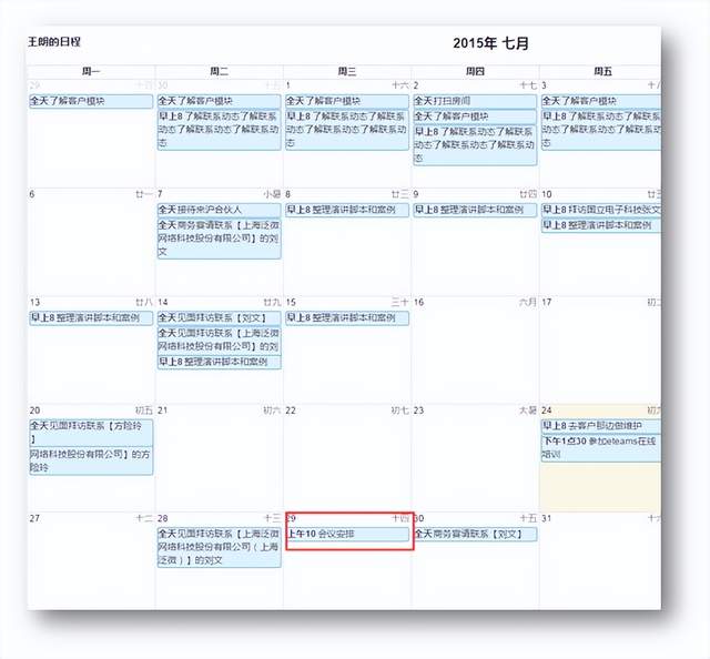 当然,会议人员难以聚齐还有个原因是会议时间选择有冲突。我发现这个可以用日程管理来解决。自从使用启效云之后,同事们会把外出、请假、开会、事项处理等内容都在日程上标记并公开出来,我只要在会议时间确定前去查阅一下大家的日程安排,就可以轻松敲定会议时间了。