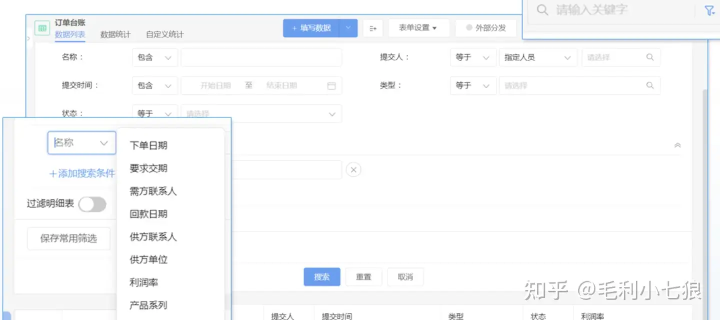 需要查看某个订单的进货数据或单价,直接在表单中输入关键词查找,也可根据条件筛选;所有订单数据,自动生成统计报表,管理者可以直观了解企业订单情况。