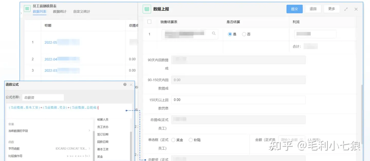 客户回款后,业务员填写销售结算表中的回款数据,系统自动统计核算订单利润等数据。在薪酬核算表中,关联销售结算表,通过设置结算规则,系统自动计算销售提成、总薪资,全程快速且准确,有效解放人力。