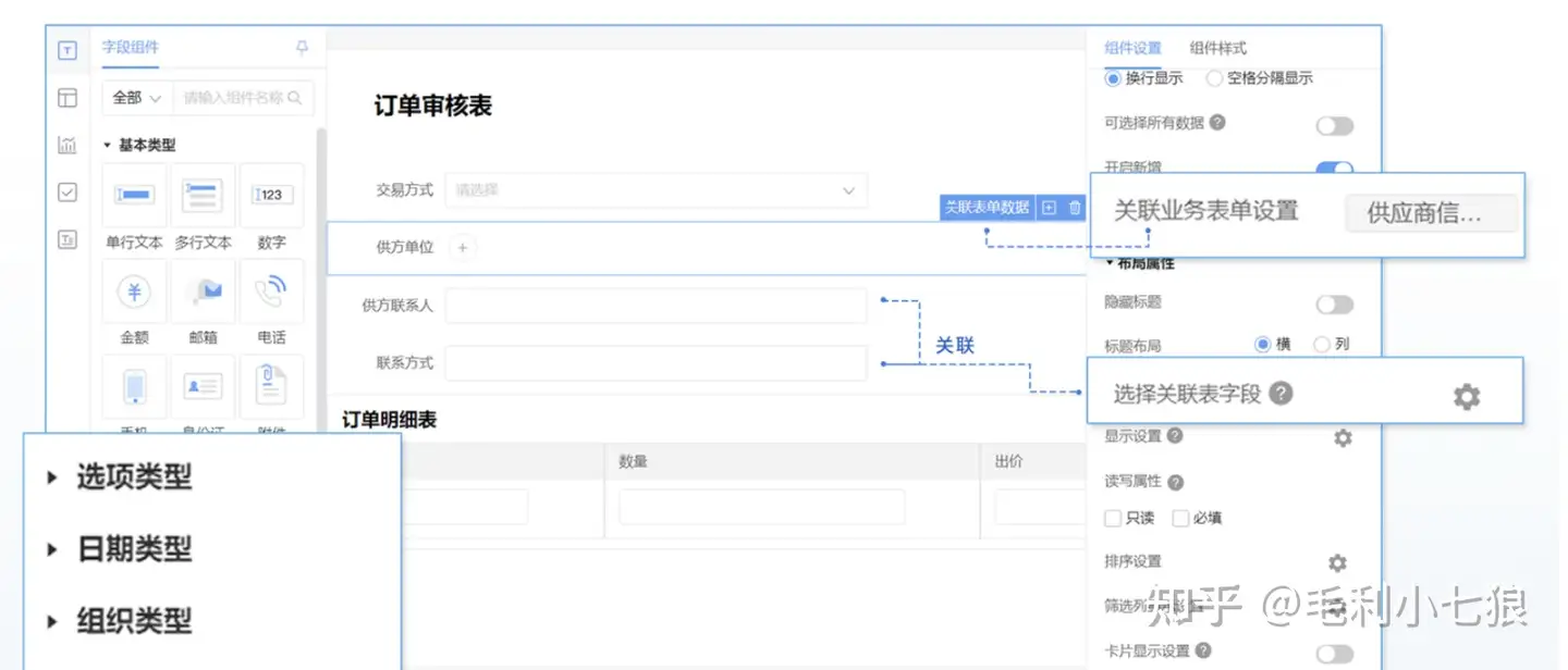 通过启效云「审批」应用,自定义搭建订单审核表,审批需要了解哪些信息,就设置哪些字段。