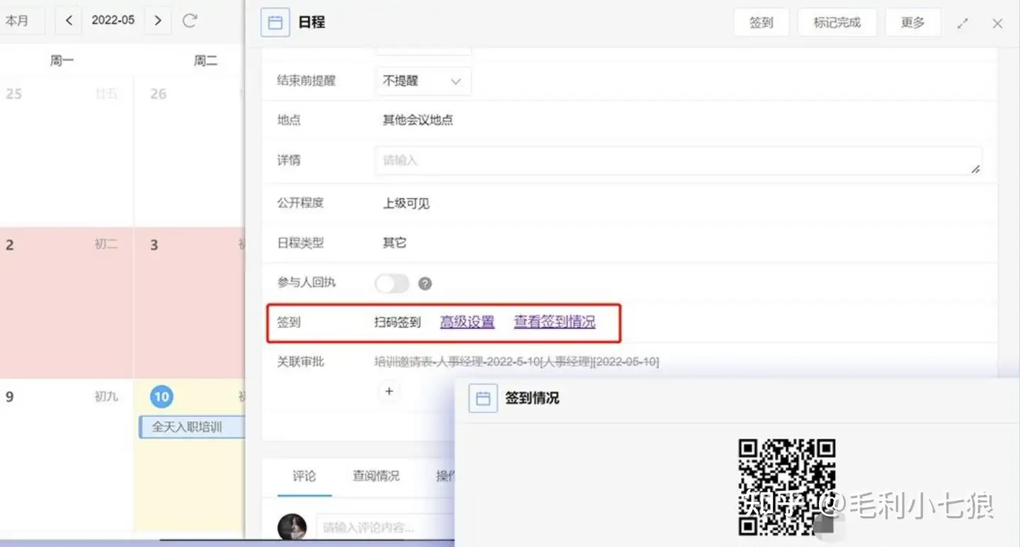 在服务客户的企业内,每年都会有相应的培训课程,HR会定期进行培训邀请,邀请完成后,生成日程安排。讲师可在日程设置扫码签到,成员到场情况一目了然。