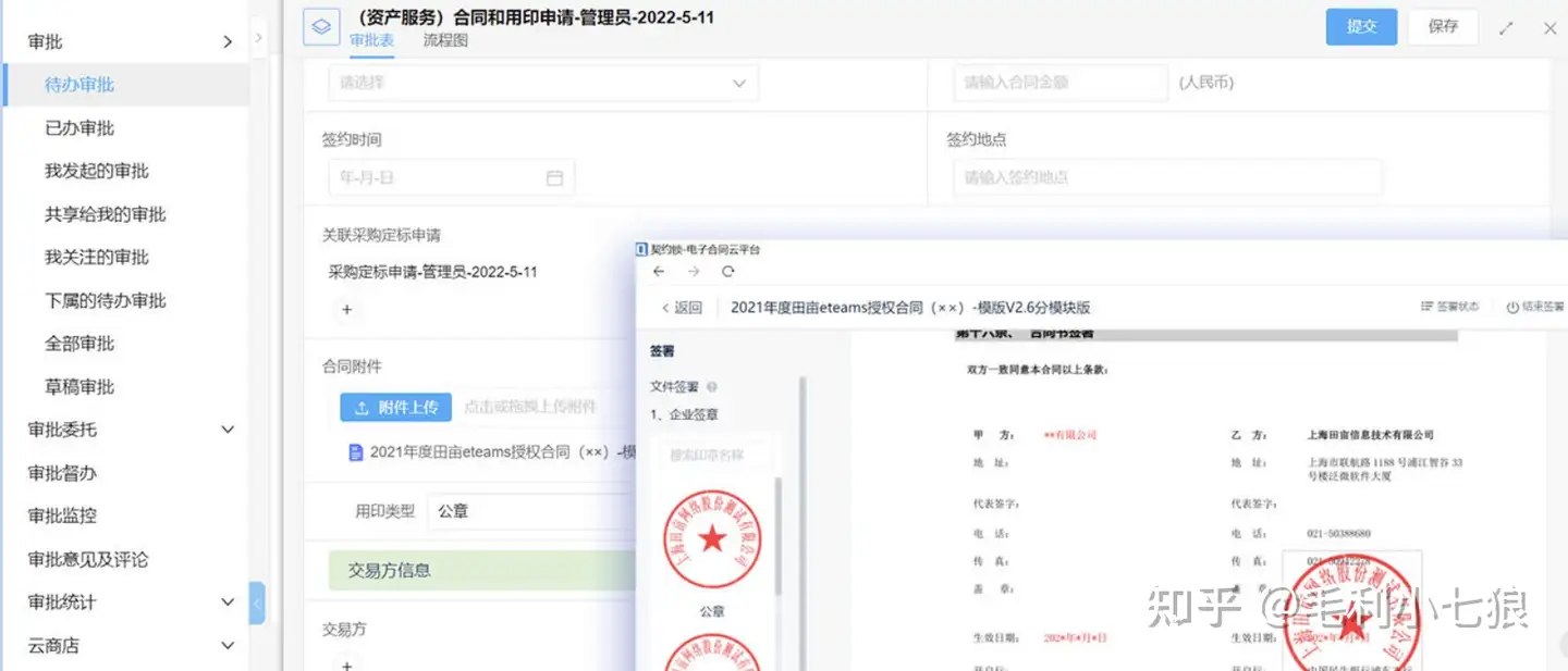 现在,客户通过启效云OA流程结合电子签章,开启全程电子化服务资产合同管理,从流程申请、审批到印章使用,全程透明且高效。