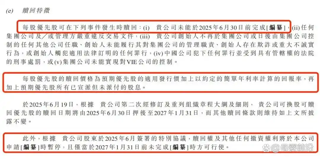 根据协议规定,如果小鹅通在2025年6月30日前没能完成既定目标,或者失去对VIE公司的控制等,投资者有权要求该公司赎回优先股,且要按发行价回购,并支付一笔按约定年利率计算的固定回报,同时结清所有已宣布但未发放的股息。