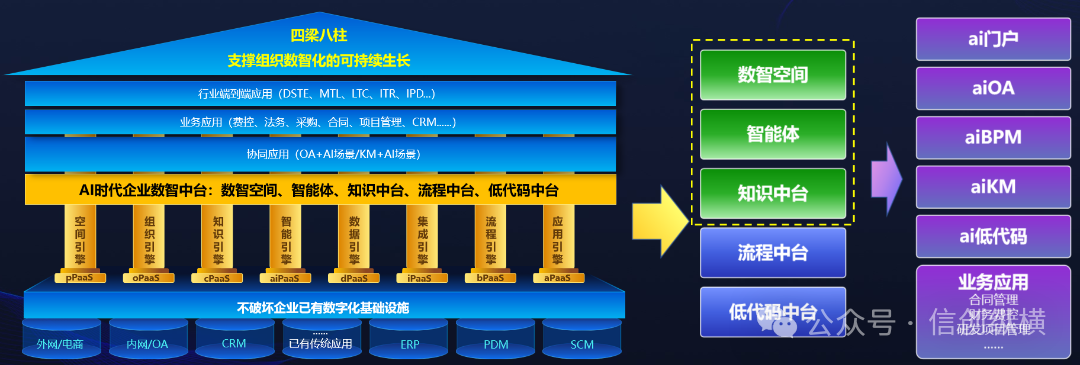提及当前的央国企领域时,他表示“信创+中台+AI”已成为其推进AI时代数智化转型的关键抓手。