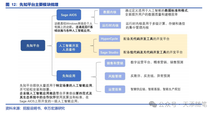 AI的应用未来会对各行各业带来革命性的影响,从C端的角度来看,会产生新的超级入口,国内大厂都有布局,豆包、千问、元宝、DS等等,现在看字节、阿里是走的比较前的,但未来谁能够成为微信级别的超级入口还有待观察。除了C端,AI给B端带来的变化也是不容小觑的,肯定也会产生一些优秀的企业,在新技术出现的时候,新进入者是有机会超越老龙头的。后面陆续看一些AI应用端的企业,看看有没有生意模式特别好的。 公司2014年成立,为企业提供以平台为中心的人工智能解决方案,2014年12月发布核心产品,先知AI平台1.0版本,后续逐渐更新迭代,2025年3月,成立范式集团,原先企业服务业务成为集团核心子业务,同时发布全新业务消费电子业务,为C端客户提供基于AI Agent的软硬件一体解决方案。 1、决策人工智能:应用场景有智慧营销、风险管理、供应链管理; 2、视觉人工智能:基于视觉数据识别,应用场景有智能门禁、公共安全监控等; 3、语音人工智能:应用场景包括智能客服、智慧转录等; 4、人工智能机器人:代替人类执行重复性或高危险的任务; 预计到2027年国内人工智能市场规模达到7000亿,决策式人工智能是增长最快的类别,2027年预计能够达到2000亿。 公司业务主要包括先知平台及产品与应用开发这两部分。 先知平台:可以分为软件使用许可(估算算力消耗收取许可费)、SageOne(AI一体机); 应用开发及服务:SHIFT智能解决方案(提供应用开发服务,帮助客户根据业务需求利用先知平台定制开发人工智能应用)、式说AIGS服务(基于公司大模型打造的生成式AI软件开发平台); 公司软件许可使用毛利率大约在95%,SageOne毛利率大约25%,其他应用开发服务毛利率为43%。 先知AI平台:公司所有业务内核,降低AI门槛,实现更多场景的规模化覆盖。先知AI平台已经经历了10年的发展,2024年3月发布的AIOS5.0行业大模型平台,实现了算力、平台、模型、应用等端到端的供给能力。能够根据历史数据构建垂类行业大模型。2024年7月发布先知AIOS5.1版本,新增GPU资源池化能力,实现对硬件集群平台化管理、算力资源按需分配和快速调度。2024年8月发布了AIOS5.2版本,新增Model Hub平台对模型统一管理,为企业大模型应用提供更好选择。 Sage AIOS是企业级人工智能操作系统,类似windows在个人电脑的功能,连通底层IT基础设施与各种人工智能应用,帮助各类人工智能应用开发与上线。 SHIFT智能解决方案:基于先知AI平台,针对不同行业业务场景打造的标准化解决方案,推动行业数字化智能。标准化解决方案帮助企业数字智能化转型,公司推出了多款面向不同应用场景的解决方案,持续更新,应用于金融、能源电力、医疗、零售、运营商、交运等行业。 式说AIGS服务:是公司基于大模型能力打造的生成式AI软件开发平台。 新品牌Phancy:C端消费电子业务是2025年初,推出全新品牌Phancy布局ToC端消费电子业务,定位是为消费电子产品提供基于AI Agent的软硬件一体的解决方案,公司帮助B端客户赋能AI能力,预警与联想合作出货超过10万款智能手表产品,这块新业务能够让公司实现B、C两端的覆盖。 主要业务是AI Agent模组、AI耳机解决方案、AI手表解决方案。AI Agent模组目标成为传统设备成为智能助手,AI耳机解决方案重塑交互体验、AI手表解决方案实现腕间数据决策智能。 先知平台:2024年营收36.76亿,增长非常快,主要是因为AI市场需求暴增,这块业务是公司增长的核心驱动力; SHIFT智能解决方案:2024年营收10.22亿,同比下降20.3%,因为这块业务主要是为了支持AI平台业务增长,未来公司会更加聚焦于重点行业的应用场景; 式说AIGS:2024年营收5.63亿,同比增长35.3%; 软件ToB端的业务少有生意模式好的,因为每家企业的业务不同,很难去简单的复制,不少软件企业针对客户也都是定制化,业务还是比较辛苦的。但ToB 端软件也有个优势,既要懂软件也要懂客户的行业,很需要时间、经验的积累,一旦建立了比较深的合作,粘性还是非常强的,壁垒就逐渐建立了。 公司目前也是项目制的AI公司,把传统的软件业务升级成了AI智能化,帮客户降本增效。目前,国产GPU与国内大模型、各类AI应用适配不是特别好,公司在解决这类问题。公司最核心的先知平台,从定制化项目正在转向模块化交付,虽然模型不能直接复用,但训练方法可以复用,为客服开发同类相的模型时不用再大量的人为干预。公司是将产品模块化、标准化,个性和定制化的工作给合作伙伴负责,收费是按照服务器数量计算,规模越大收费越高。 公司也在走模块化的路线,比起传统的项目制软件行业肯定要好,这个生意需要对行业有所了解,时间越长积累越多。AI给行业带来的变革肯定是比智能化要多的。 未来AI时代,C端大概率会诞生超级应用,感觉未来几年大厂这块的竞争会非常激烈,肯定谁都不想被时代落下,这肯定是必争之地。B端的竞争也不会轻松,但可能不会像C端那么激烈,而且因为涉及到各行各业,短期内集中度不会很高,最终可能跑出几家企业,都有自身的核心领域,想要赢家通吃不太符合行业属性,这点和C端有很大区别。 公司是AI领域ToB端很不错的,AI定制化项目,更加能够节省人力,也在走模块化、定制化的路线,生意模式也比传统的项目制软件要好。如果未来公司能做深耕做好几个行业,有自己稳定的客户,生意想被抢走还是不容易的,毕竟这个行业know-how还是挺深的,需要积累。公司与合作伙伴C