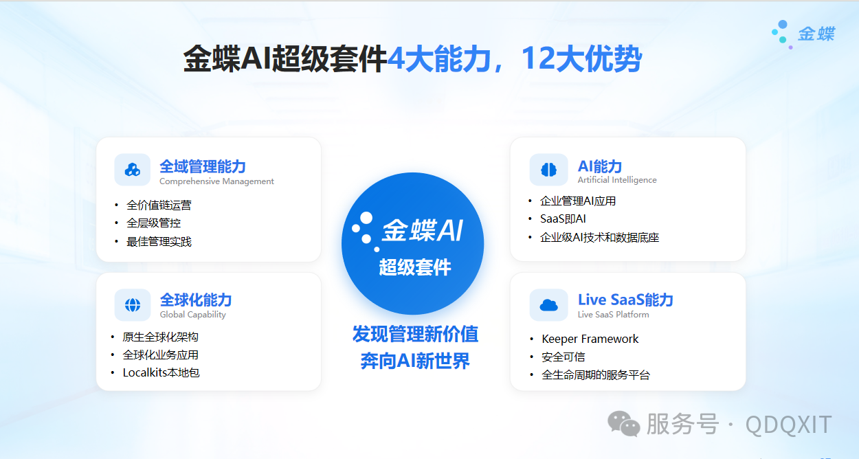 面对AI浪潮下的企业转型命题,金蝶集团总裁章勇明确:“AI与SaaS不是替代关系,而是共生进化,金蝶AI超级套件让AI真正走进企业真实业务场景,成为可落地、能创造价值的工作智能体”。该套件面向大型企业,以全域全场景覆盖、AI原生、全球化、Live SaaS四大核心能力,彻底打破传统管理壁垒,助力企业发现管理新价值,奔向AI新世界。