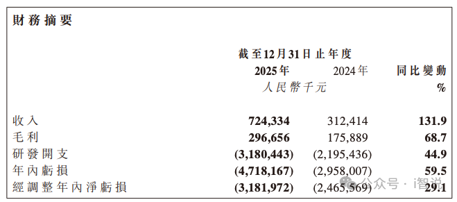 北京智谱华章科技股份有限公司(股份代号:2513)发布2025年财报。年报显示,智谱全年总收入达人民币7.24亿元,同比大幅增长131.9%;但受高额研发投入影响,年内净亏损扩大至47.18亿元。