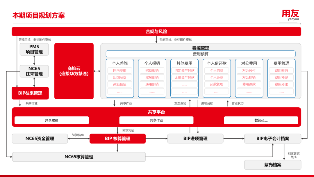 该项目以“一个中枢、两大应用、一个闭环”为核心架构,系统推进建设工作。重点打造全球智能审核中枢,将费用报销制度精准嵌入平台核心模块,依托大语言模型、多模态AI等前沿技术,实现各类票据及附件的智能识别、自动校验与合规审核,从业务源头筑牢合规防线,保障报销流程规范、数据真实、风险可控。