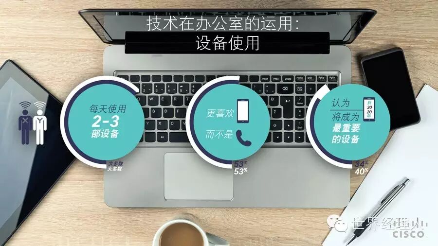 思科CCWTR报告显示,70%的Y一代(18-30岁)人力资源人士认为,在办公场所使用手机、Pad等移动终端可以更快执行任务。当然,有40%的受访者更倾向于优先使用PC来处理工作事务。其中34%的Y一代白领更喜欢使用手机,而X一代的比例为27%。