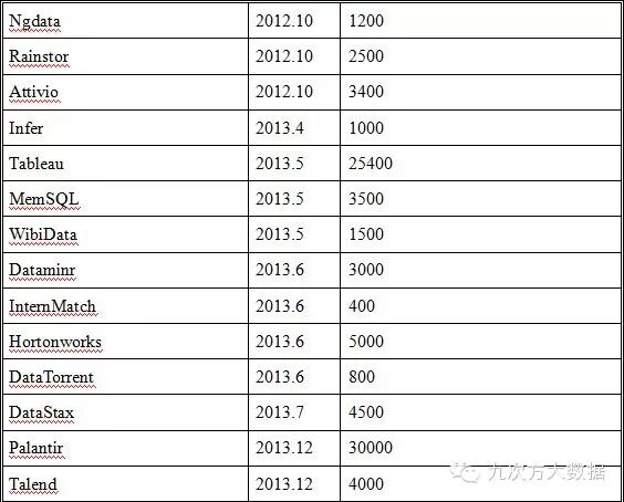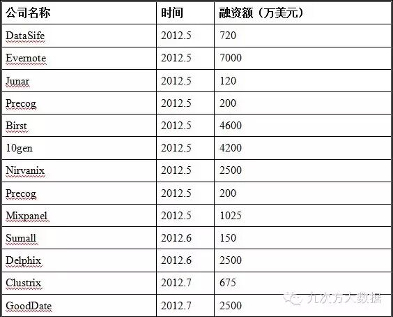 大数据处理创业公司10gen在2012年5月融资4200万美元,投资方包括New Enterprise Associates、Sequoia Capital、 Flybridge Capital Partners和Union Square Ventures。10gen的主要产品是非关系型数据库MongoDB,付费用户已达到500家,行业覆盖金融、通讯和媒体等。