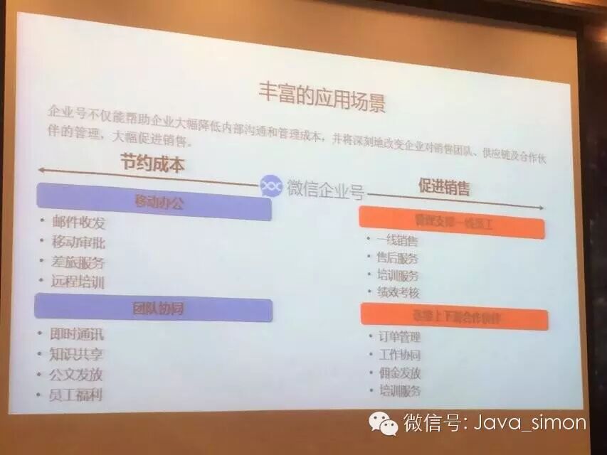 因为是现场演讲,内容上我做一些处理,并且在演讲的过程中,很多的企业CIO都表现出浓厚的兴趣,同时也能看出腾迅的微信企业号在CIO心目中还是很有杀伤力的,如果微信企业号能简化审核的难题,特别是提交社保证明的变态审核,才能加速微信企业号的在企业APP应用商店的产业生态的形成。在微信企业号这种轻平台的选择上,企业也要三思而行,量体裁衣。