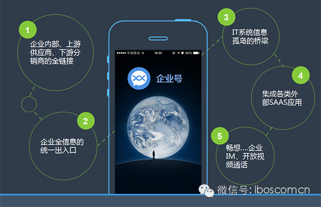 企业号可以是内部所有信息系统统一的消息出口及入口,基于微信企业号,员工无需安装任何手机APP,即可打通企业内全部信息。