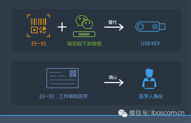 很多企业安全级别较高的账号或系统往往会配以USB KEY,而现在手机上的微信账号也能成为系统验证用户身份的唯一标识。手机就成了用户随身的USB KEY了,用户通过手机中微信扫一扫,实现替代USB KEY,实现安全登录系统。
